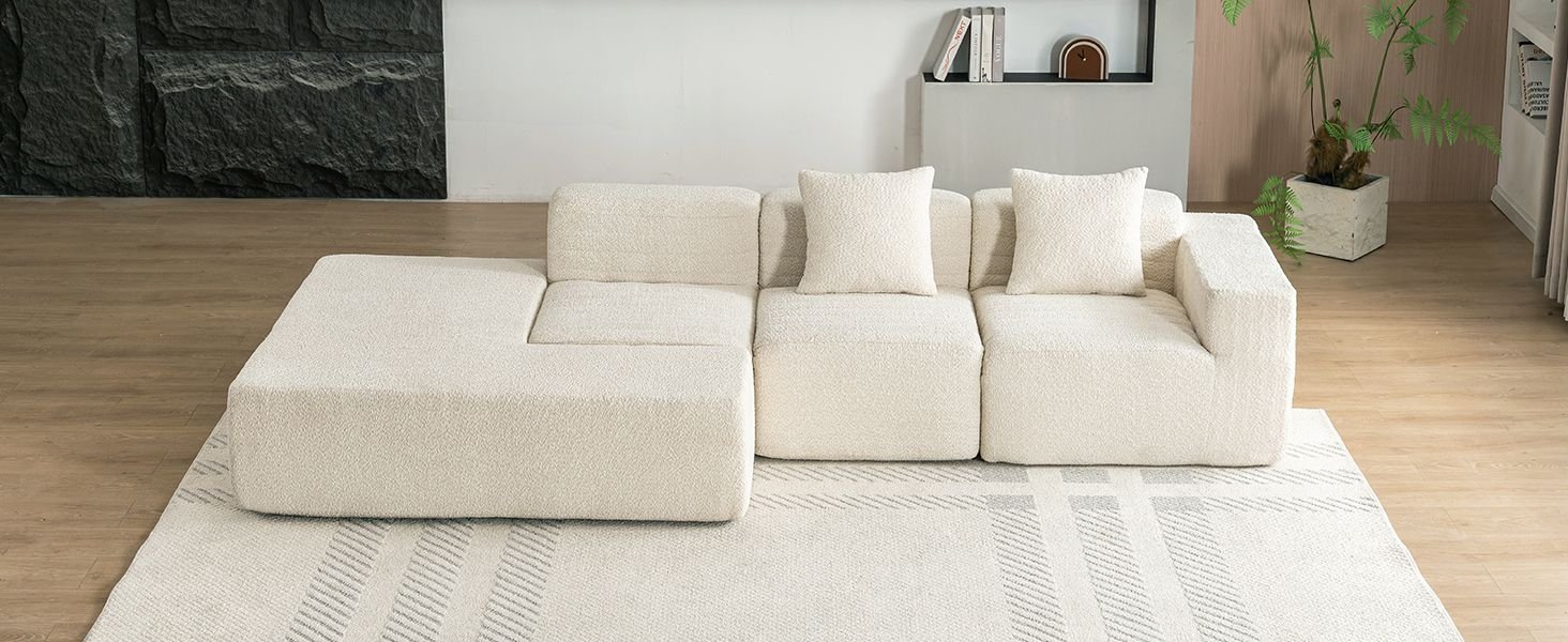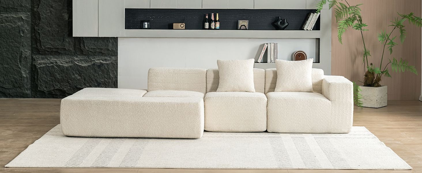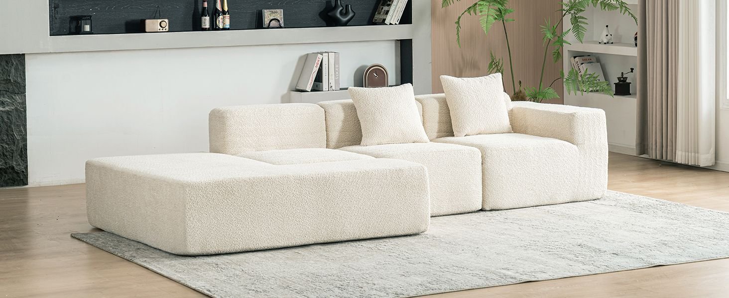 Unmatched Comfort - This sectional sofa offers plush comfort and spacious seating. Upholstered in ultra-soft boucle fabric, the sofa comes with a pocket springs with high-density foam structure, ensuring long-lasting durability and consistently comfortable seating experience.