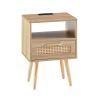 Home > 15.75" Rattan End table with Power Outlet & USB Ports , Modern nightstand with drawer and solid wood legs, side table for living room, bedroom,natural
