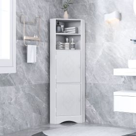 Tall Bathroom Corner Cabinet; Freestanding Storage Cabinet with Doors and Adjustable Shelves; MDF Board; Gray (Color: White)