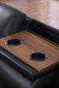 Rounded arms, subtle tufting, and nailhead trim complete this traditional design, One of the middle seats pulls down to reveal two cup holders for your favorite beverages.