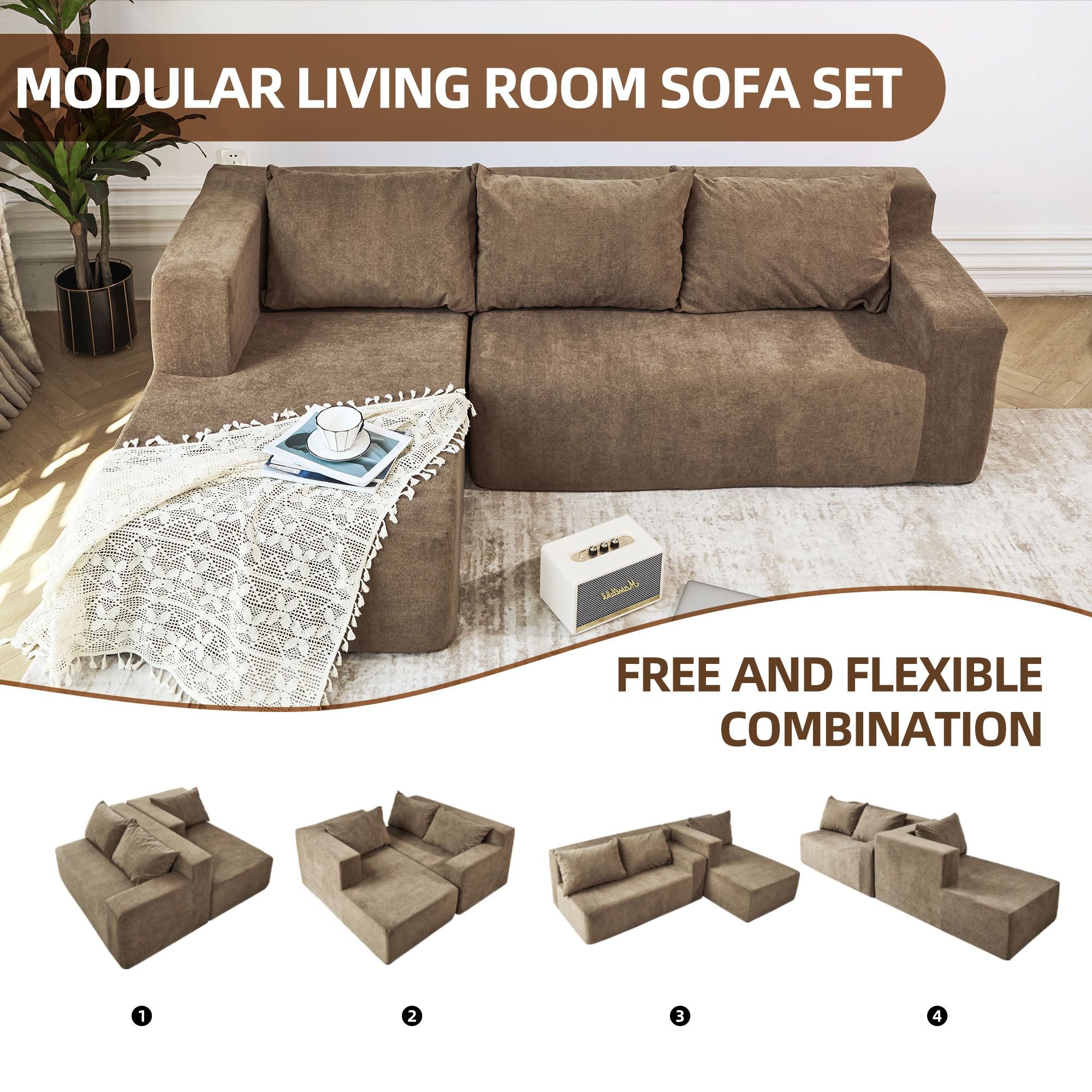 [Experience Comfort]Indulge in supreme comfort with our meticulously designed cloud sofa set, perfect for your living room. Crafted from soft, breathable 100% polyester fabric, it features a supportive sponge structure for an optimal seating experience. With soft pillows and supportive armrests, this sectional sofa allows you to recline and relax in your preferred position.