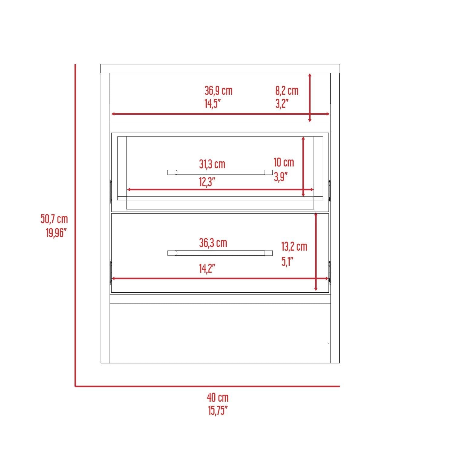 Philadelphia Nightstand, Two Drawers, Concealed Shelf