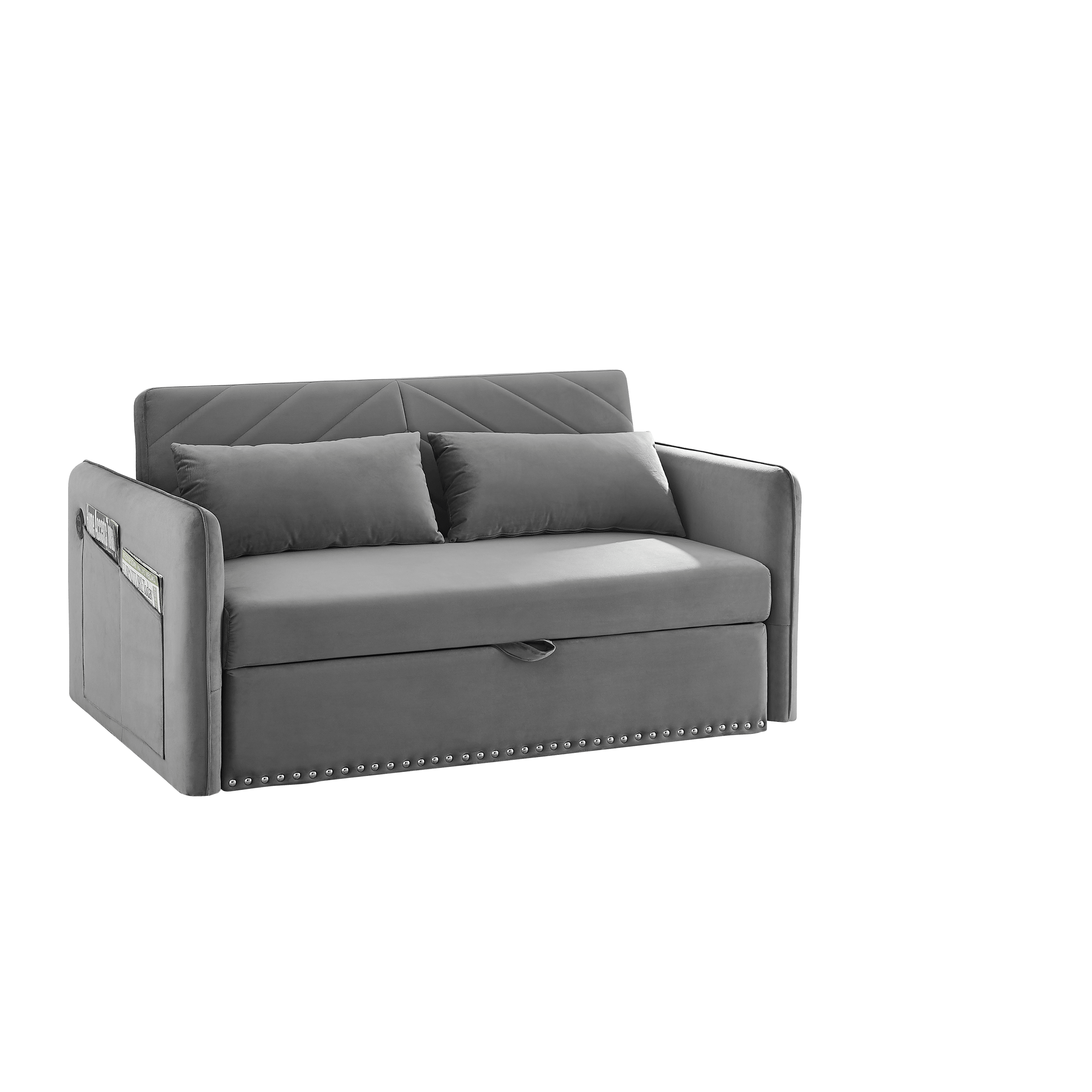 MH" Sleeper Sofa Bed w/USB Port, 3-in-1 adjustable sleeper with pull-out bed, 2 lumbar pillows and side pocket
