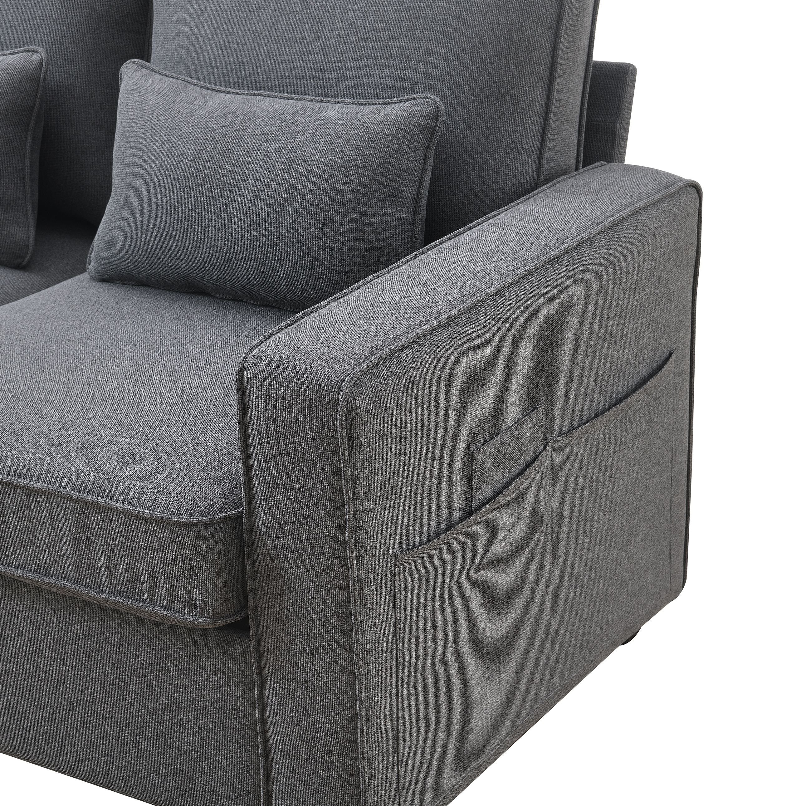 [VIDEO provided] [New] 104" 4-Seater Modern Linen Fabric Sofa with Armrest Pockets and 4 Pillows,Minimalist Style Couch for Living Room, Apartment