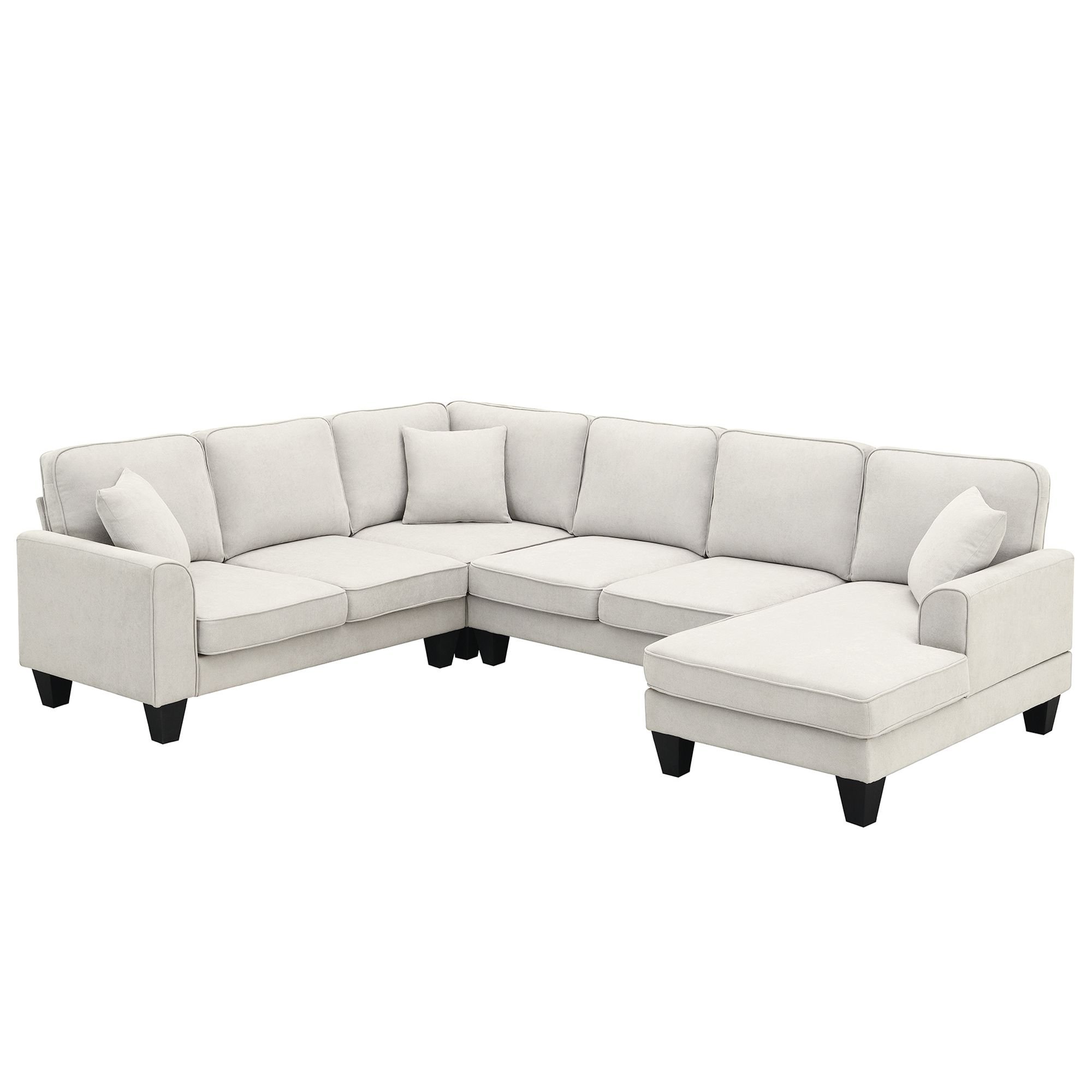 Spacious Furniture: Sturdy solid wood frame with iron back support, 100% polyester fabric, and high density foam padding make this combination sofa beautiful and comfortable, perfect for your apartment, house or conference room. This U-shaped combination sofa is suitable for any indoor environment, embracing your friends and giving a comfortable and cozy feeling!