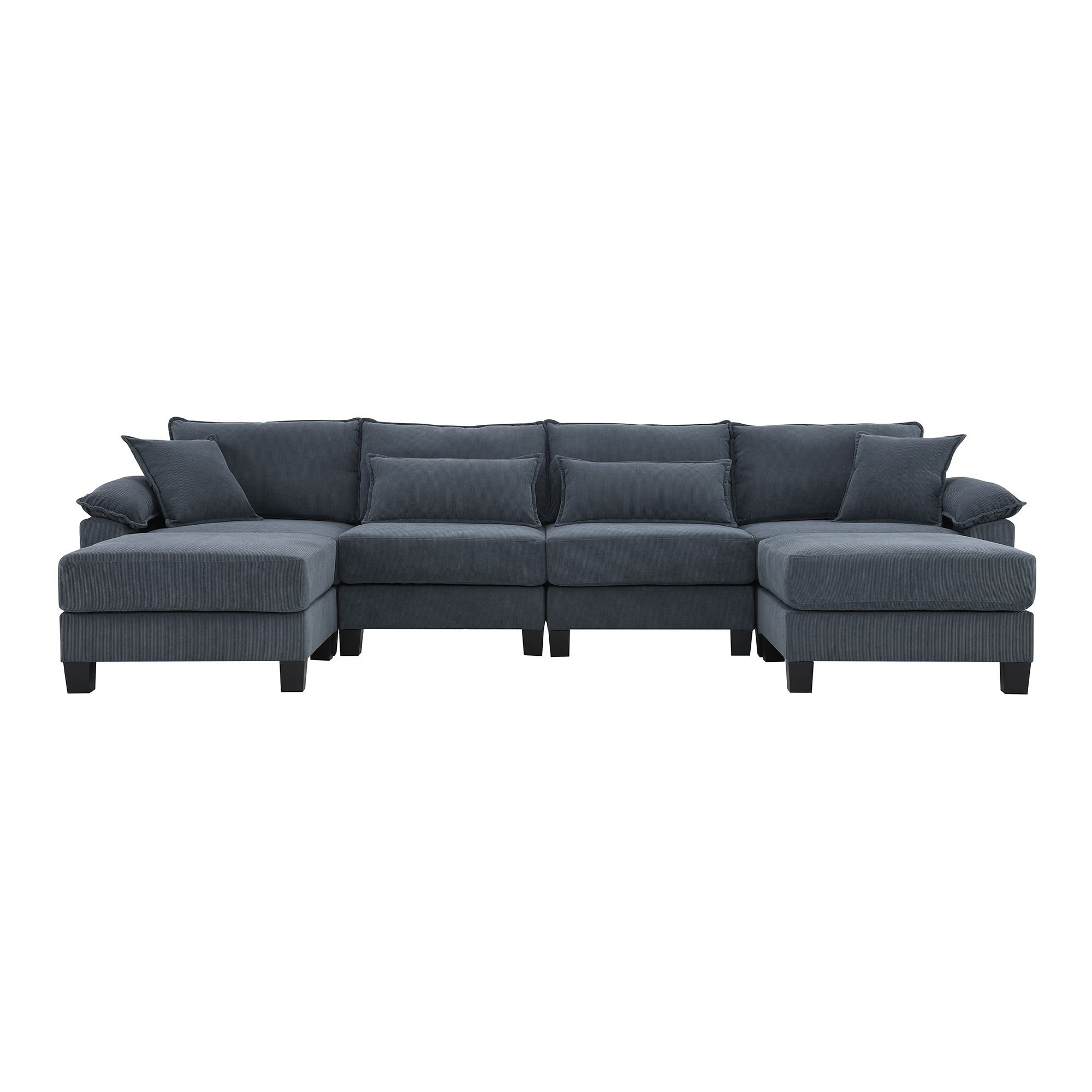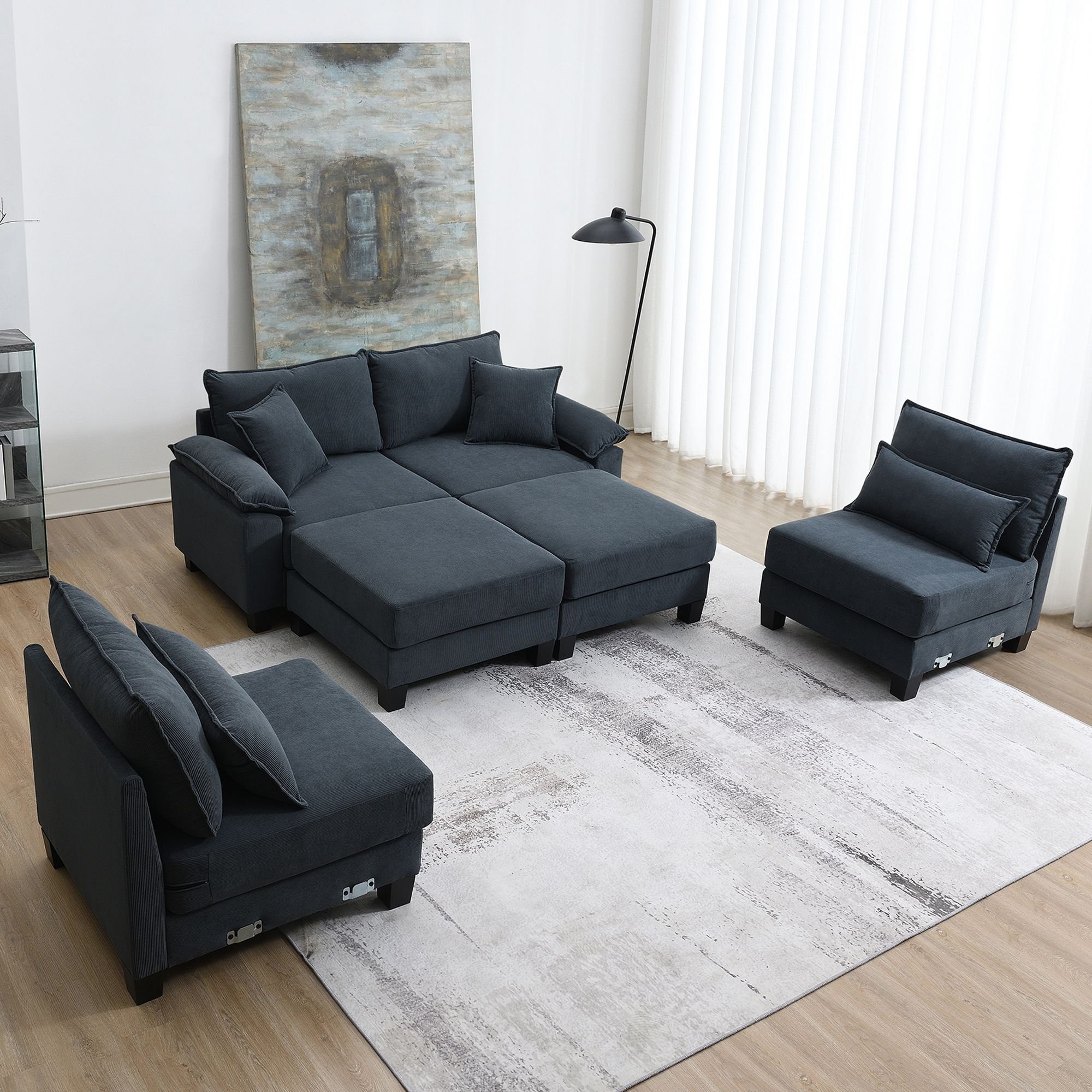 Home > [VIDEO provided][New]Wide Seat Corduroy Modular Sectional Sofa Bed,Sleeper Couch Set with Armrest Pillow,6 Seat Free Combination Sofa with Ottomans